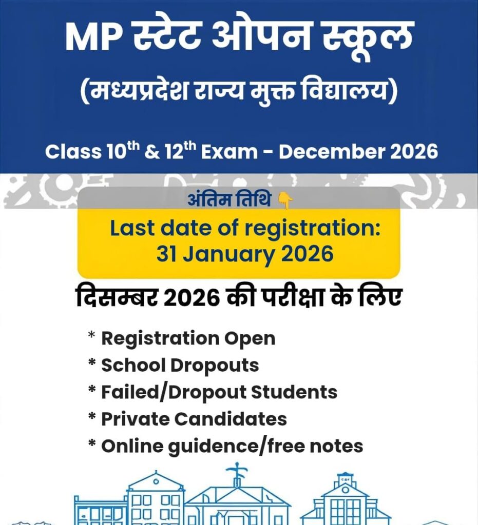 MP State Open Board 2026: 10वीं-12वीं में फेल छात्रों के लिए दूसरा सुनहरा मौका (पूरी जानकारी)